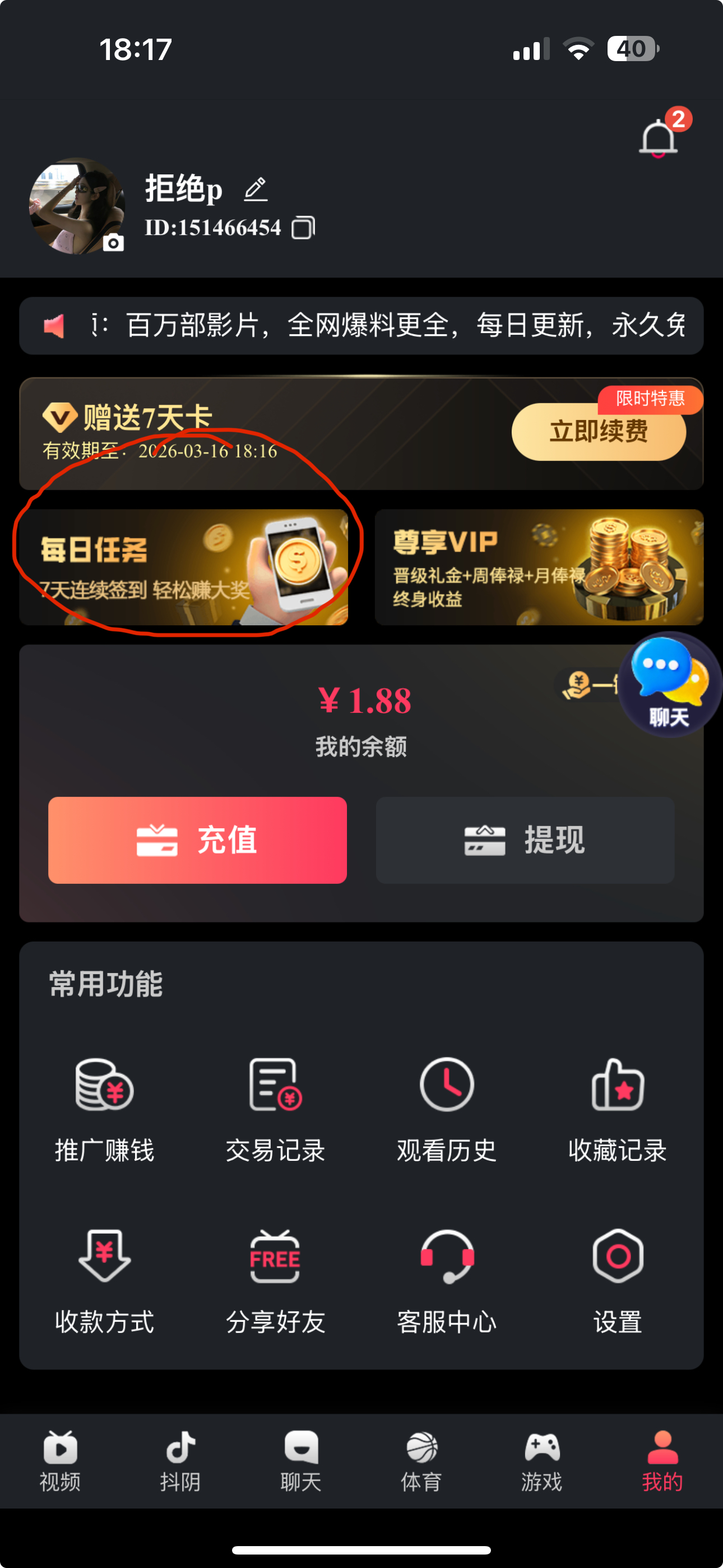 每天都可以签到 不用充值 如果只签到不玩 7天下来能有30元左右 第8天又可以重新签到 反正我全程没充值一分钱 今天领了个3.88 麻将爆了100倍 前几天领了个7块 玩快三又出了100 前天小号累计签到7天存了30 又提了100 多号多撸
